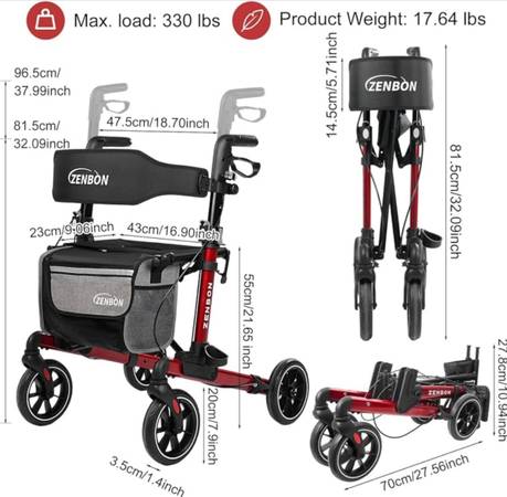 Made from durable Aluminum, it supports up to 330 pounds, perfect for resting on the go. This stylish walker ensures safety and independence, making it an essential companion for everyday activities.