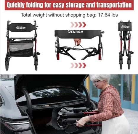 Foldable Rollator Walker: The Walker is lightweight (17.6 lbs) and folds with one hand for easy storage, compacting to just 32*27*11 inches.