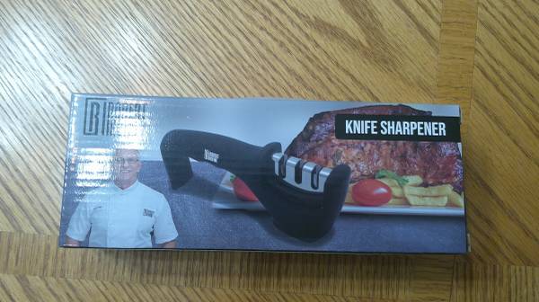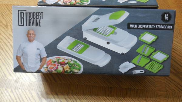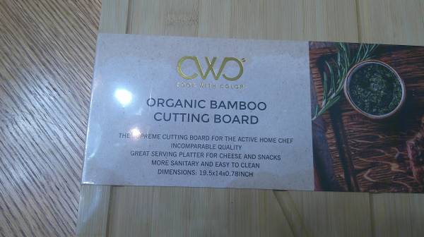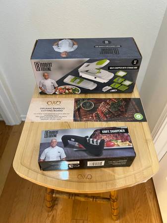 Brand New in packaging. Cook With Color Organic Bamboo Cutting Board (19.5" x 14" x .78") and Robert Irvine's Knife Sharpener and Multi chopper with storage box. Call or text Barbara @