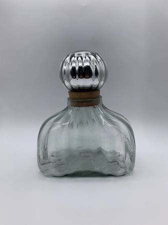 Mexican 1980's Era hand blown Mercury Glass Decanter with a silver sphere shape stopper. This stunning Mexican hand blown glass decanter from the 1980s is a must-have for any glassware collection. These are very rare and rare to find in the condition this is in because they are over 50-years old.