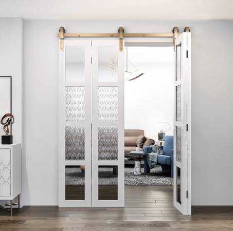 84" Bifold Sliding Barn Door Rolling Hardware, Front Mount Kit for 4 Doors, Fit Width 20", Yellow Powder Coated
