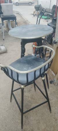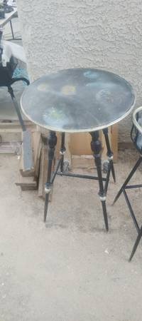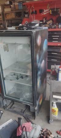 Beautifully Hand painted refrigerator by artist Tiffany. Depictions of space and planets. Great for pool area man cave or she shed , garage, patio area or studio apt. $300Must pick up. Or delivery for $30. Throw in Black and gold hand painted with space and planets high top table and matching barstool to go with refrigerator in wrought iron to match the fridge for another $85. Also indoor or outdoor use. Contact the artist Tiffany. show contact info
