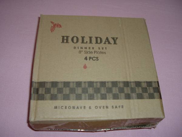 Sorry for the fuzzy photo, but I didn't want to open the box to get a better picture of the plates, so went with the blurry ad photo that I had. I also added another ad photo of the complete set of 4 dinner plates, 4 side plates, 4 bowls, and 4 cups, which was of better quality. Please look for my other ads if you are interested in the complete 16 piece set, and I will get you a revised price