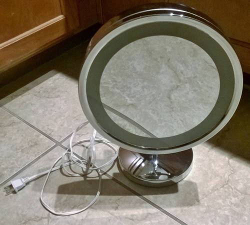 Personal bathroom Make Up Mirror w/ light and faux-nickel finish -...