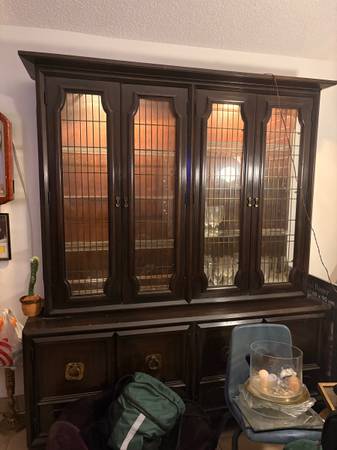 Hi I am just looking to sell are cabinet / hutch it in very good condition it very heavy . I am firm on wine cabinet included price $100.00 Please call me or text me