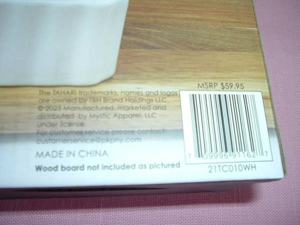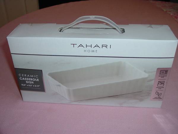 Brand new, never been used, in original box packaging. This white ceramic stoneware loaf pan features fluted sides, with handles on both sides for easier convenience, lead and cadmium free, measures 10 1/2 inches long x 5.3" across x 2.17 inches deep