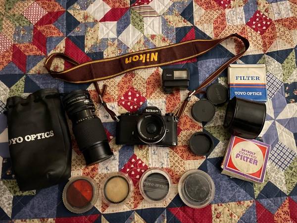 All Cash, I Do Not Ship I have a beautiful vintage Nikon 35mm camera flash, lens, filters, extension. Everything in photos you get. I can no longer use this as I have MD, I cannot see like I use to....