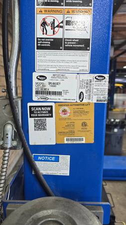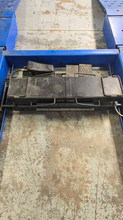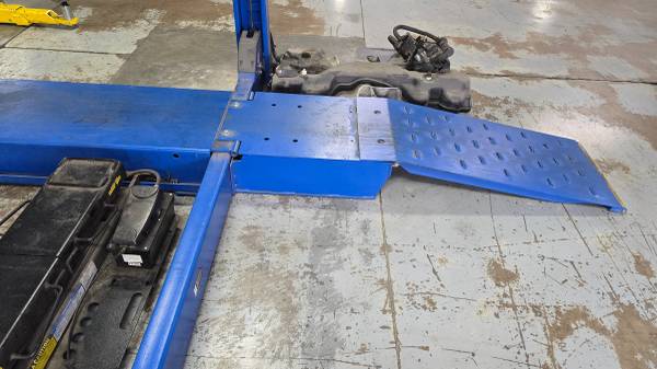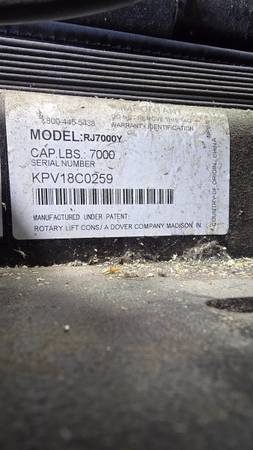 Used Rotary 14,000lb 4 Post SM14N102Y with (2) 7,000lb Air/Hydraulic Rolling Jacks RJ7 in excellent condition.