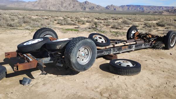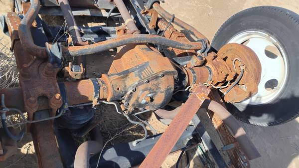 Motorhome rolling chassie 4 wheel disc brakes, all intact, factory. Dually rear end set up, factory. Only the 4 mounted tires included. NO SHIPPING, PICK UP ONLY No pink slip, friend sold it to me...