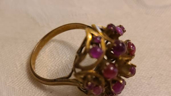 Up for Sale is a Antique Victorian 10k Gold 18 Stones Ruby Ring size 8 4 grams....it is in Great Shape especially for the age but it is missing 3 Stones....it should have a total of 21 stones but is missing 3 and has a total of 18 still in the settings