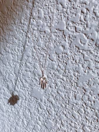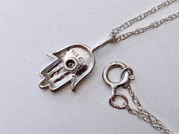 Beautiful Solid 14K Diamond Hamsa Pendant Necklace , Marks: 14K, Rhodium-Plated 14K White Gold Length: 18.5" Ornament-Length: .5" Ornament Width: .25" Would make a very good gift