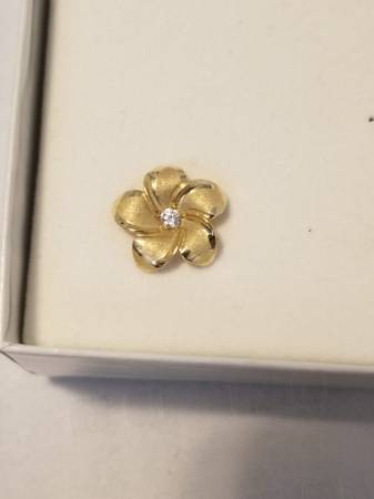 14k yellow gold Treasures of Hawaii Plumeria Earrings - By Tropical Creations. Marked all over as 14k as shown. Still has original price tag of $196 on it. Must sell