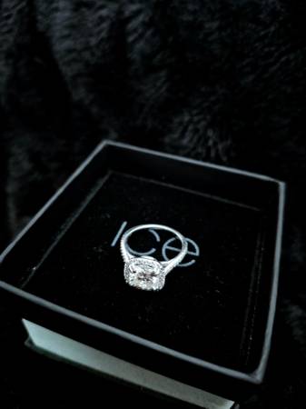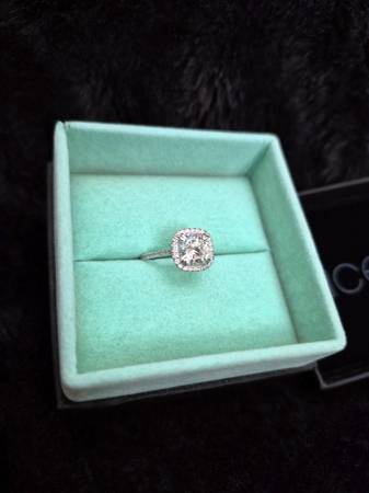 Very beautiful Moissanite Gem. With real diamonds on the ring and cushion. bought it several years ago, worn for a week, its been in the box ever since. great condition willing to negotiate price. I can deliver. or if you want to see it in person you we can arrange that as well.