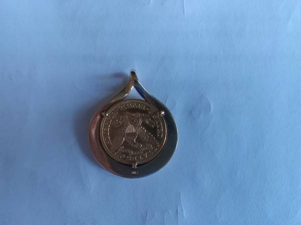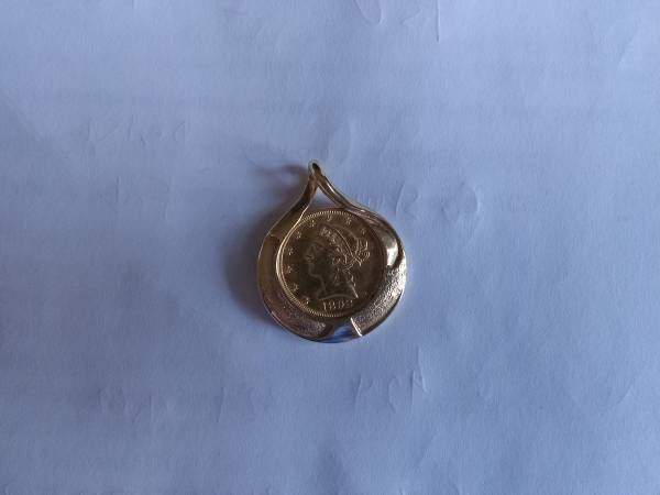 1893 (Philadelphia) $5 Half Eagle Liberty Head Gold Coin Pendant, Vintage14K Gold Bezel