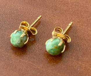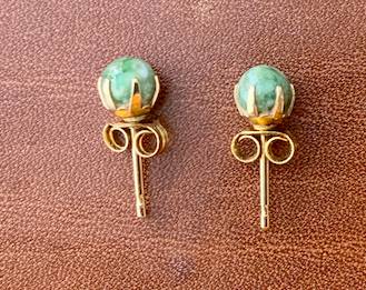 Vintage 925 sterling Silver Gold plated natural Jade earring