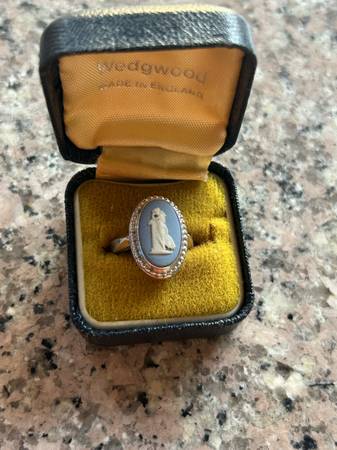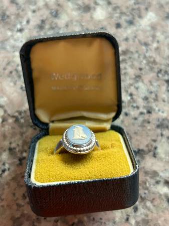 Vintage Sterling Silver Wedgwood Ring Light Blue Jasper Cameo Boxed I believe it is a US Size 6 UK Size L