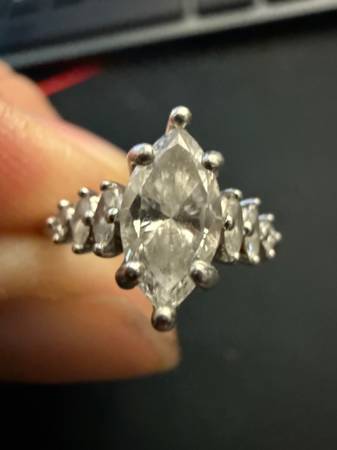 Natural diamond ring with marquis cut center stone. Not lab-grown. Platinum and white gold band. [Add carat weight, clarity, color, ring size] PRICE: $2000 obo - Cash only MEETING LOCATION: We meet...