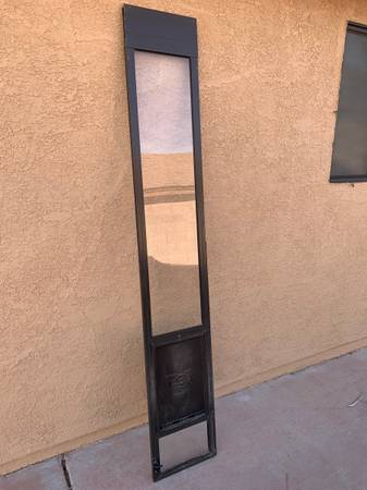 PETSAFE DOG DOOR…Large-Tall….Used and in Great Shape……$140.00 Fits into your sliding glass door. Additional hardware included. Dimensions: Spring Loaded Adjustable Height-77”- 81”Tall x 13.5”Wide...