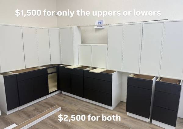 Black cabinets & White cabinets as pictured. They were never installed or used