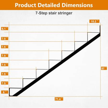 High Strength Galvanized Steel - Our Stair Stringer are made of heavy-duty galvanized steel, with high density, strong load-bearing capacity, durability, wear resistance, and are very suitable for long-term outdoor use. 4-Hole Design - Each flat part of our Stair Stringer is equipped with 4 bolt holes for connecting wooden boards. You can choose to easily place 1 to 4 wooden boards to ensure safety, stability, and no shaking. Easy to Install - Our packaging includes expansion bolts and wooden nails, a simple 4-step installation process - positioning, drilling with a 3/8-inch drill bit, securing with expansion bolts, and installing wooden boards. No complex programs, saving you time and energy. Multi Scenario Application - This Stair Stringer provides convenient passages for various occasions and can be installed on wooden walls, brick walls, concrete walls, and even iron, adapting to the installation needs of different scenarios. Multiple Sizes Available - We offer 7 sizes to meet the needs of different stair heights, ensuring perfect fit and seamless integration into your space. Upgrade your stairs with confidence.