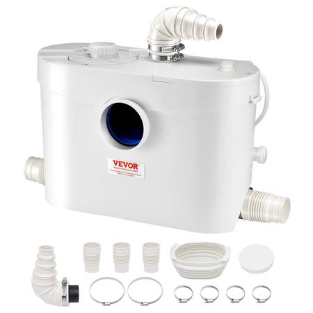 VEVOR 900W Macerator Pump, 48 GPM Flow, 40 ft/12 m Head, Macerator Sewerage Toilet Pump with 4 Water Inlets, Wastewater Disposal Up flush Machine for Toilet, Basement, Shower, Sink, Laundry, Bathtub.
