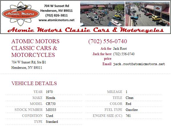This vehicle is located at Atomic Motors Classic Car Sales and Restorations in Henderson, NV just 20 mins from the fabulous Las Vegas Strip. Come down and see us or call Jack for best price at 702-556-0740 or call our sales dept at 702-826-3811 ext 2 for general information. Additional pictures and videos may be found on our site at www.atomicmotors.net