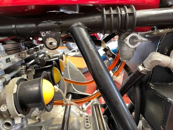 Fresh Honda livery paint on fairing, tank and seat exude the heyday of the vintage era. And it sounds amazing!