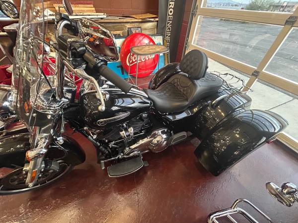 This Harley is for the die hard bike rider that may need something more stable and easier to handle, but still being a TRUE Harley Davidson. It comes with a Milwaukee-Eight 114 engine and six speed transmission. It has Brembo Reflex brakes with ABS. You will ride in style with Slash-Cut mufflers, Mini Ape handle bars and Bobtail fenders. This bike is a MUST SEE.