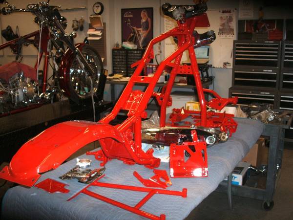 Garret GT20 Turbo - Boondocker NOS Injection - Jeff Oltman ECU - Metanol Injection - Beigt Ramping Pressure Regulator - Greedy Blow-Off Valve - NASA Certified Thermal Barrier Intake Shield - GSXR Steering dampner milled into triple trees - Hand rolled front fender.