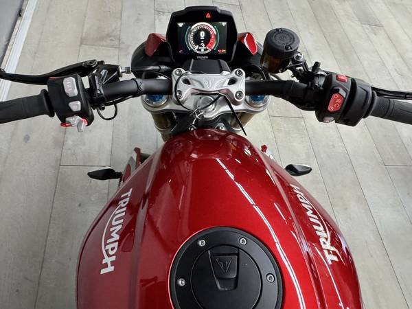 With Triumph’s latest generation switchable Optimized Cornering Traction Control, Optimized Cornering ABS, Front Wheel Lift Control, Shift Assist up and down quickshifter, 5 riding modes, and full keyless system.