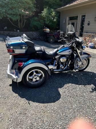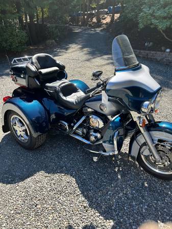 2002 Harley Davidson Ultra Classic converted in 2012 to Lehman Renegade Trike. This bike/trike is like new. Always garaged, lovingly maintained, but rarely road. One owner, recently serviced by Destination Harley Davidson, Silverdale WA. All new tires, completely gone through, fluids changed and minor repair. This trike is as clean as they come, no body damage or even scratches. Actual mileage 2,998 - not a typo, less than 3,000 miles. Currently in Sequim Washington but will ship to final destination. $17,000 or best offer.