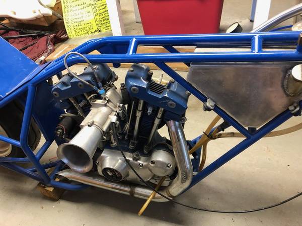 Ironhead Sportster dragbike, S & S 5" flywheels and Supreme rods, Branch heads, Andrews X cams, S & S B carb, 11 to 1 comp., nitrous system, Truett 3 rail, air frame, all new, has been...