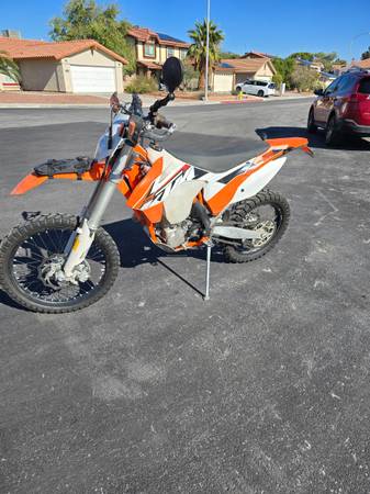 KTM 500 EXC current Nevada tags 1350 total miles. Electric and kick start. I bought it as off-road only & installed street legal kit and the required dot approved dual sport tires. Next was paying for required approved dealer inspection, then NV DMV final inspection. She's fully street legal! Everything works perfectly on this bike and it is a real live dirt bike that can cruise comfortably 65mph on the street.