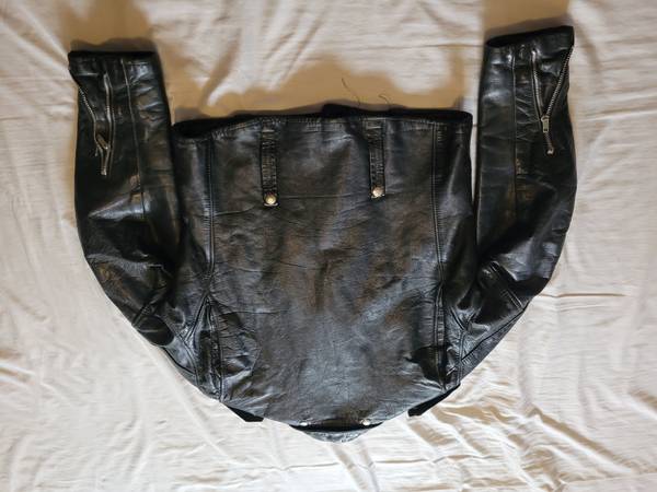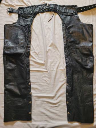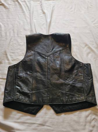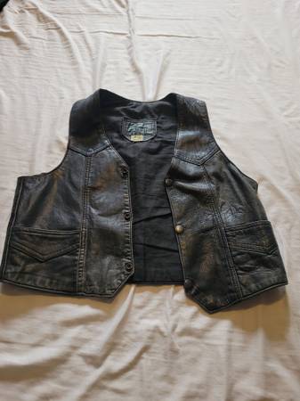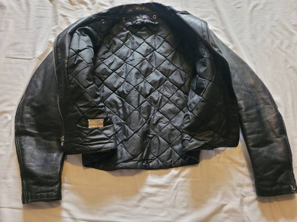 1960s AMF Harley Davidson women's riding jacket, in very good used condition. No rips, tears, or stains. One sleeve zipper needs some attention. Women's size 38 small. Included with purchase is vest and pair of chaps in great shape. Asking $300.00. Thanks for looking.