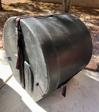 Will fit up to 18 deep by 22 (Maybe 24) inch Bass drums. heavy duty indestructible case. Super strong nylon straps. Humes and Berg Enduro.