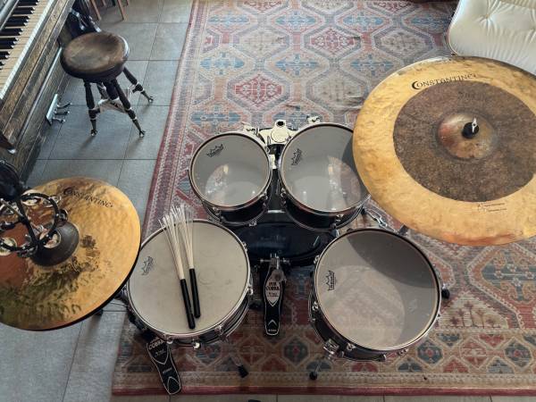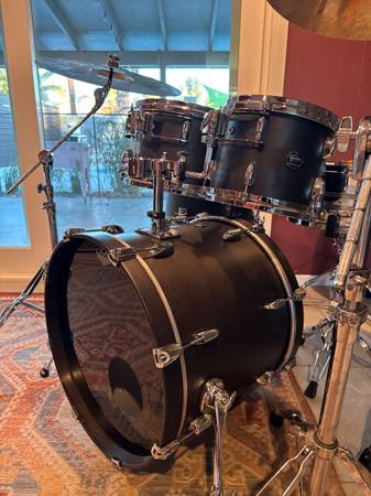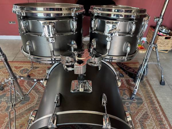 Beautiful matte black Gretsch Renown Kit. 7 ply maple shells sound amazing. Excellent condition. 10'', 12'' Toms 14'' Floor Tom 20'' Bass Drum 12 x 5 '' Pearl steel piccolo snare included CASES...