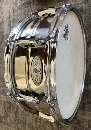 Excellent condition Pearl snare drum. These are great snares with a snappy, crisp sound. The custom alloy sensitone version has a slightly bronze/brass look to the shell. 5 1/2 x 14" inches. A great...