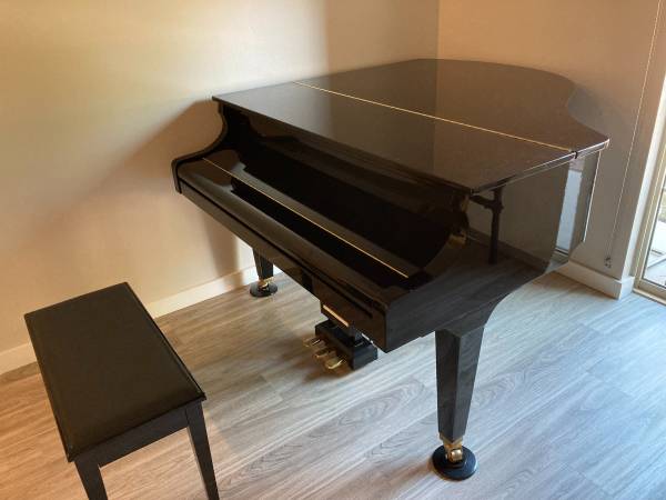 Exquisite polished ebony finish with "soft landing" keyboard cover