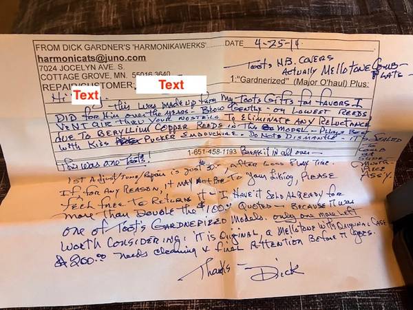 In 2001 Toots gifted me two of his personal harps after a gig at Yoshi’s in Ca. He also gave me his personal tech contact info who would sanitize and fix any blown reeds. Toots used fresh harps...