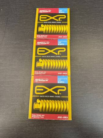 Keep your acoustic guitar sounding its absolute best with this convenient 3-pack of D'Addario EXP11 Coated 80/20 Bronze strings. A favorite among players for their exceptional lifespan and vibrant sound, these strings deliver the perfect balance of warmth, brightness, and projection. The ultra-fine EXP coating resists tone-killing corrosion and grime, giving you 3-4 times the life of standard, uncoated strings. This popular light gauge set (0.012 - 0.053) is easy on the fingers while providing plenty of volume and a rich, full-bodied tone. Perfect for gigging musicians, studio work, or simply ensuring you always have a fresh set on hand. Don't let a broken or dead string stop the music. Grab this 3-pack deal today and experience long-lasting, brilliant tone! D'Addario EXP11, acoustic guitar strings, 3-pack guitar strings, D'Addario strings, coated guitar strings, light gauge acoustic strings, EXP coated, 80/20 bronze strings, .012-.053, long life guitar strings, Daddario EXP, guitar string bundle, acoustic strings bulk, guitar accessories, steel string acoustic, bright acoustic strings, musical instrument strings