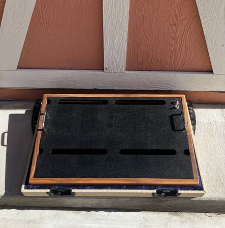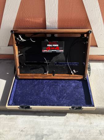 24”x16” Handcrafted Walnut Hardwood Pedalboard with Voodoo Lab Pedal Power 4x4. Blonde Hard Case. MINT, NEW, UNUSED, NO ISSUES. $700 obo.
