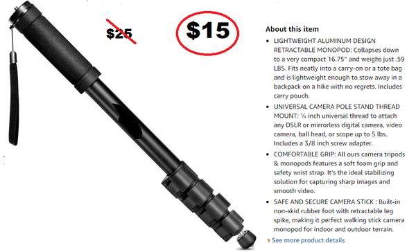 Dynex DX-SW040 Monopod Camera stabilizer Photography, a large and small tripod set (see photos for more details) Will sell each individually for the price shown OR offer a value of all 3 for $30 -...