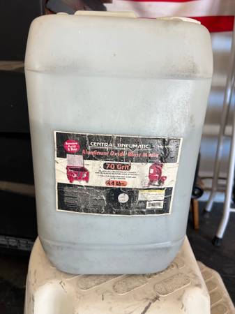 Have bucket of aluminum oxide black blast media. Has about 3/4 left in bucket. Originally held 44 lbs. Call or text Barbara @