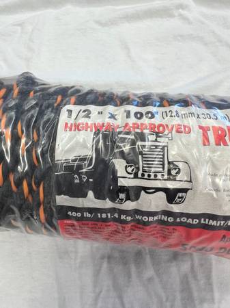 Brand New-100% Polypropylene truck rope. 400# working load limit. Call or text Barbara @