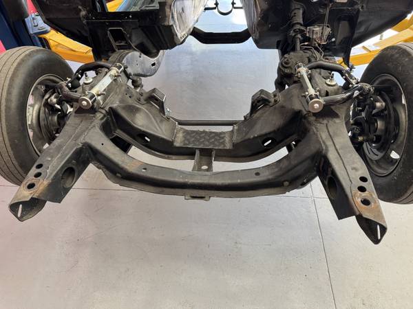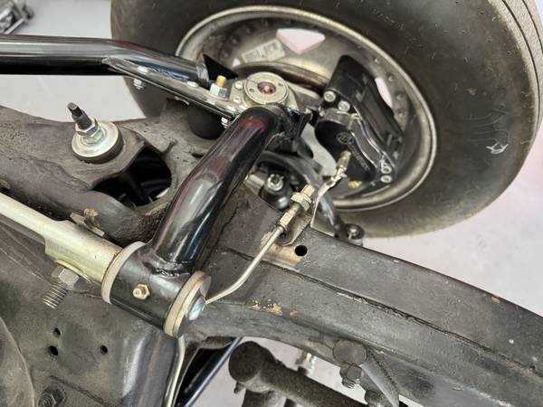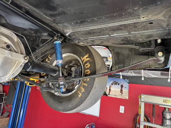 Have original front subframe with QA1 tubular upper and lower control arms, QA1 coil over adjustable shocks, manual steering box, all steering linkage, engine frame mounts, Moser Aerospace Disc brakes , Stainless steel brake lines, Centerline Convo Pro series rims w/ Hoosier tires, subframe connectors, driveshaft safety loop