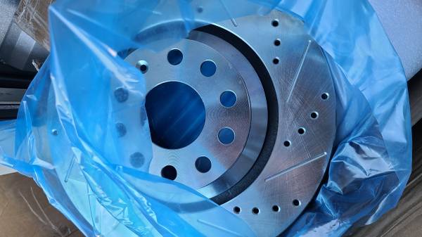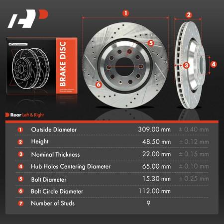 up for sale is a A-Premium 12.20 inch (310mm) Rear Drilled and Slotted Disc Brake Rotors Compatible with Select Volkswagen and Audi Models - Passat, Golf, Tiguan, Atlas, CC, GTI, Arteon, R32, A3, Q3, RS3, S3, 2-PC Set.............New Open Box Condition