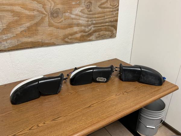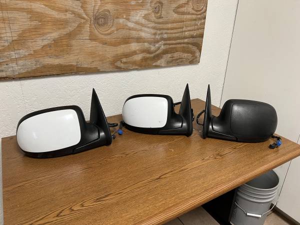 Selling 3 side view Mirrors 2 right side passenger side with blinkers, power fold, puddle light $40 each and 1 left side without blinker no power fold $20 in good working conditions. Look at the pictures for colors and conditions. these fit 2003-2007 Silverado Sierra Tahoe Yukon Escalade Suburban Avalanche.