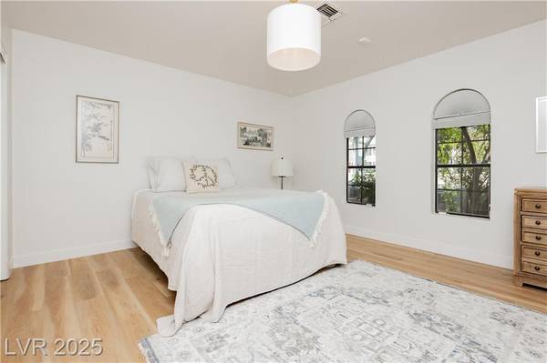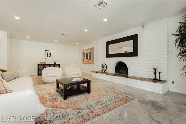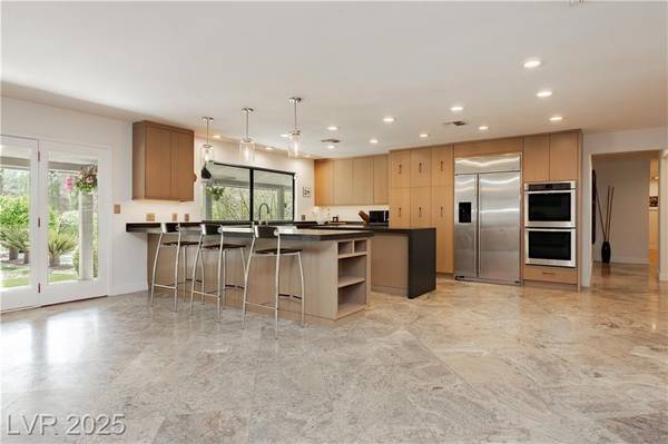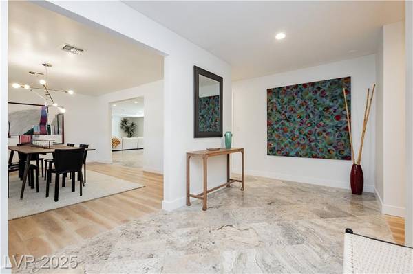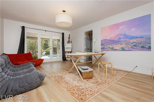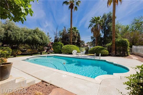 Nestled in the highly sought-after Green Valley Country Club Estates and only minutes from the District and Green Valley Ranch, this stunning single-story home offers a rare blend of mid-century modern design and timeless comfort. Situated on an expansive 17,424 sq ft lot, set between the lush tranquility of Hole 11 and the sweeping vistas of Hole 12 at Wildhorse Golf Course, this residence has a premier position on one of the course’s most scenic stretches. Inside, you’ll find an open and inviting floor plan filled with natural light and character. The residence also includes a versatile den with a full bath that can easily serve as a 4th bedroom. French doors lead to a covered patio that overlooks a lush backyard oasis and pool, complete with mature landscaping, towering olive and palm trees. From the thoughtfully designed layout to the unique architectural style, this home stands apart from the typical Las Vegas property—a true gem for those who appreciate charm, space, and style.