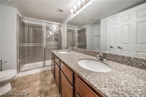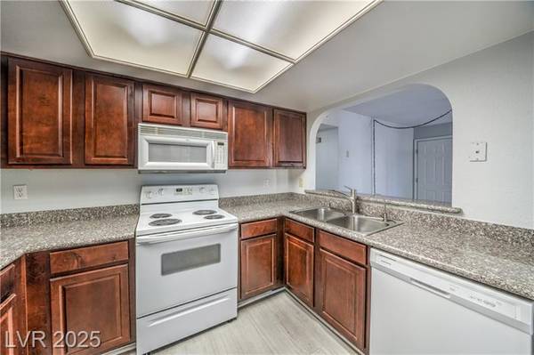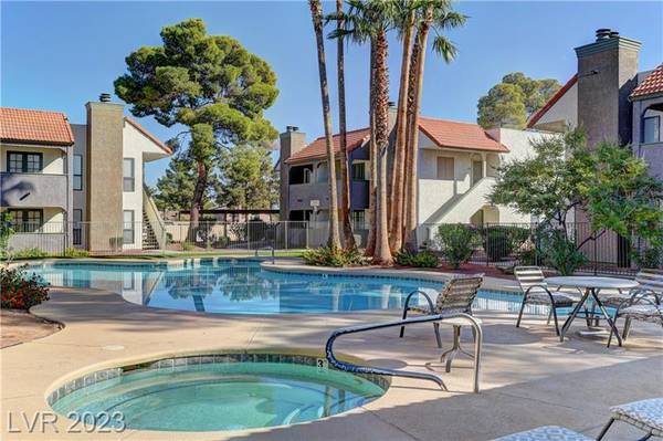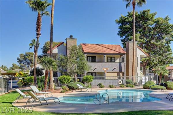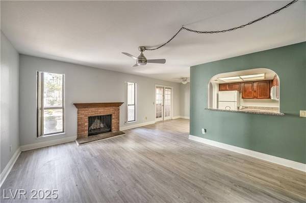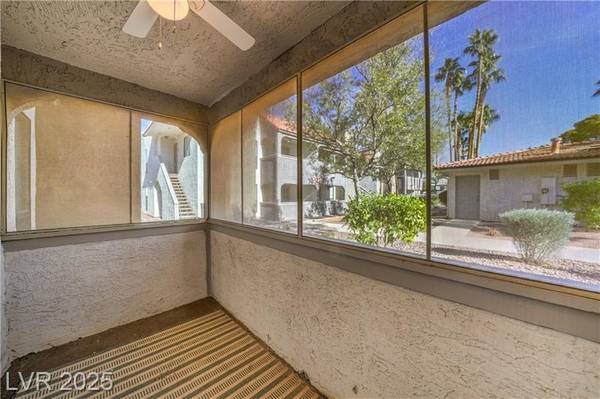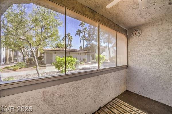 Beautiful 2-bedroom/2-bath condo for sale in popular Green Valley in Henderson. Gated community just minutes from Sunset Station Casino/Hotel. Galleria Mall, shopping centers, water-park, GV High-school and freeway access. Ground-floor unit boasting 1,000+ Sqft with 2 bedrooms and 2 full bathrooms. Open floor plan with modern laminate flooring, 2-tone colors, ceiling fans and a real fireplace. 3 covered enclosed patios all with french doors and solar screens for energy efficiency and privacy. Upgraded kitchen with breakfast bar, pantry, granite countertops and all white appliances. Primary bedroom has plush carpeting, ceiling fans, walk-in closet and own patio. Dual vanity in primary bath with large soaking tub/shower. Guest bedroom features laminate flooring, own patio and full bathroom with shower and dual sinks.