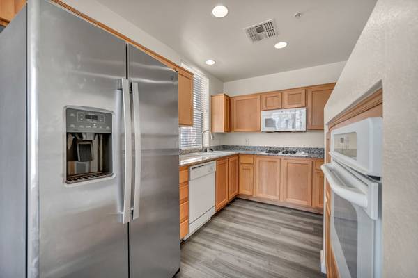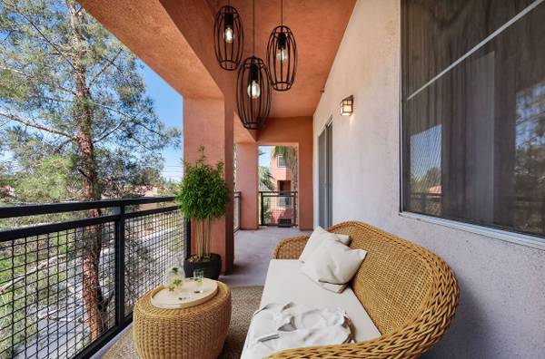 Live the Las Vegas Lifestyle — Just minutes from the iconic Strip and Allegiant Stadium, this beautifully upgraded top-floor condo offers the perfect blend of comfort, style, and convenience. Located in the exclusive guard-gated Park Avenue community, this modern unit features NEW interior paint, NEW luxury vinyl plank flooring, window treatments, and ceiling fans throughout. Enjoy stunning mountain views from your private balcony. You'll have the ease of both a secured garage parking space and an additional outdoor space. Indulge in resort-style amenities including a sparkling pool, tennis courts, and a two-story fitness center complete with locker rooms, steam room, and dry sauna — all designed to elevate your everyday living.
